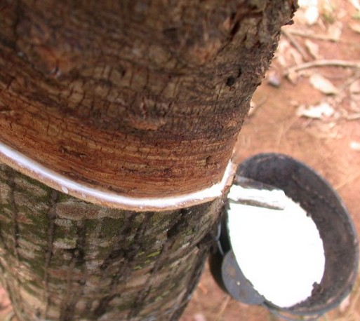 世界上約有2000種不同的植物可生產(chǎn)類似天然橡膠的聚合物,已從其中500種中得到了不同種類的橡膠,但真正有實(shí)用價(jià)值的是巴西三葉橡膠樹。橡膠樹的表面被割開時(shí),樹皮內(nèi)的乳管被割斷,膠乳從樹上流出。從橡膠樹上采集的乳膠,經(jīng)過稀釋后加酸凝固、洗滌,然后壓片、干燥、打包,即制得市售的天然橡膠。天然橡膠根據(jù)不同的制膠方法可制成煙片、風(fēng)干膠片、縐片、技術(shù)分級干膠和濃縮膠乳等。